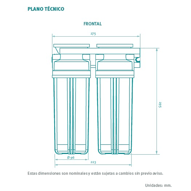 Dimensiones generales (H x W x L): 340 x96 x 275 mm.